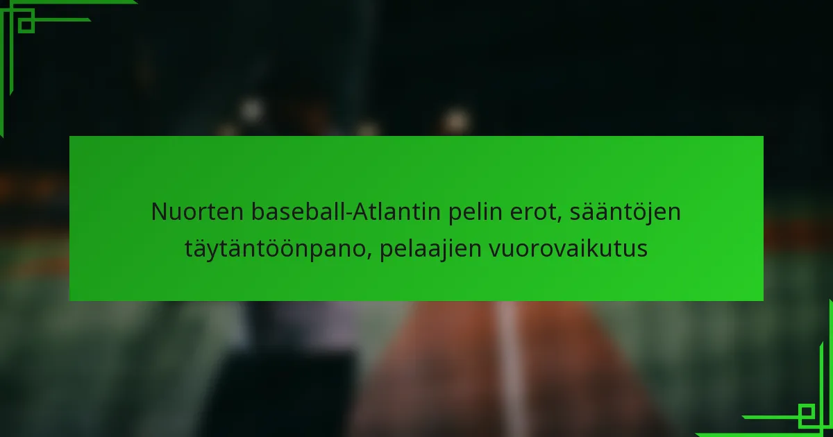 Nuorten baseball Itä-Rannikolla on luonteenomaista erilaiset sääntöerot, jotka vaikuttavat pelitapaan, pelaajien kelpoisuuteen ja liigakytkentöihin. Nämä paikallisten tulkintojen ja yhteisön arvojen muovaamat vaihtelut luovat monimuotoisen kentän, jonka läpi pelaajien, valmentajien ja vanhempien on navigoitava varmistaakseen onnistuneen kokemuksen omissa liigoissaan. Key sections in the article: Toggle Mitkä ovat keskeiset sääntöerot nuorten baseball-liigoissa Itä-Rannikolla? Yhteenveto virallisista säännöistä liigoittain…