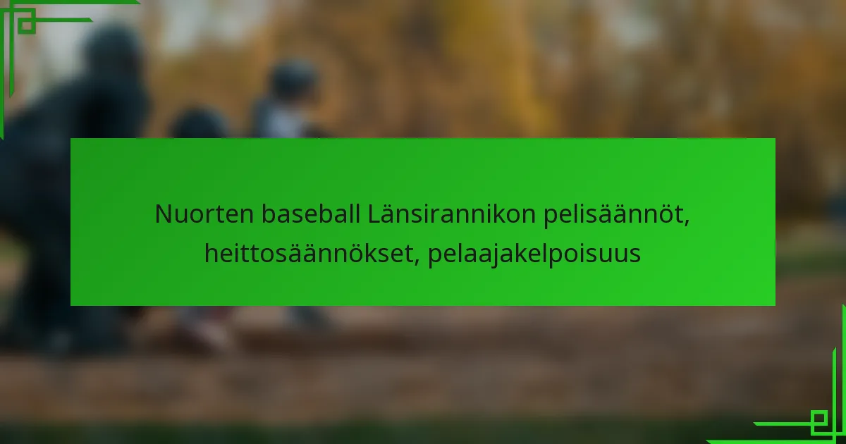 Nuorten baseball Länsirannikolla noudattaa ainutlaatuisia pelisääntöjä, jotka poikkeavat kansallisista standardeista, joten on tärkeää, että pelaajat, valmentajat ja vanhemmat tutustuvat näihin sääntöihin. Lisäksi heittosäännöissä keskitytään pelaajien turvallisuuteen ja taitojen kehittämiseen, ja niissä otetaan huomioon ikäperusteiset säännöt ja heittojen määrärajat. Pelaajien kelpoisuusvaatimusten, kuten ikärajojen ja asuinpaikkavaatimusten, ymmärtäminen on olennaista, jotta varmistetaan asianmukainen osallistuminen paikallisiin liigoihin. Key sections…