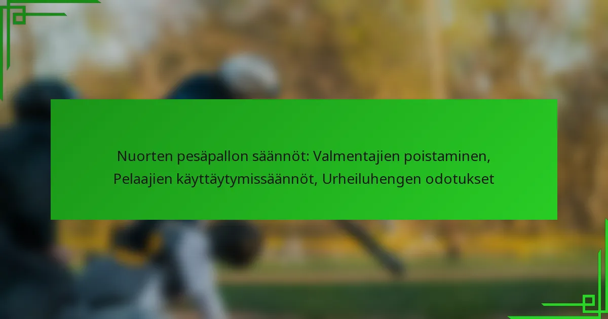Nuorisopesäpallossa positiivisen ja kunnioittavan ympäristön ylläpitäminen on olennaista, minkä vuoksi valmentajien poistamiseen ja pelaajien käyttäytymiseen liittyviä sääntöjä noudatetaan. Valmentajia voidaan poistaa kentältä urheiluhengen vastaisesta käytöksestä, mikä vahvistaa rehellisyyden merkitystä tässä urheilulajissa. Lisäksi pelaajien käyttäytymissäännöt edistävät urheiluhenkeä ja reilua peliä, varmistaen, että kaikki osallistujat ovat kunnioittavia toisiaan kohtaan koko pelin ajan.