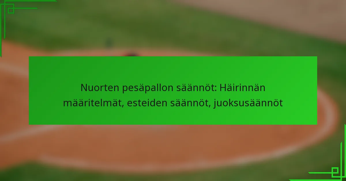 Nuorten baseballissa häirinnän ja esteen sääntöjen ymmärtäminen on elintärkeää reilun pelin ja turvallisuuden ylläpitämiseksi kentällä. Häirintä tapahtuu, kun pelaaja keskeyttää pelin, kun taas este tarkoittaa kenttäpelaajan, joka estää juoksijan etenemisen ilman palloa. Lisäksi selkeät juoksusäännöt auttavat pelaajia navigoimaan kentällä tehokkaasti, varmistaen sujuvan ja miellyttävän pelin kaikille osapuolille.