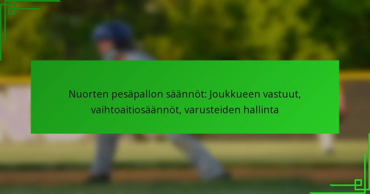 Nuorten pesäpallon säännöt: Joukkueen vastuut, vaihtoaitiosäännöt, varusteiden hallinta